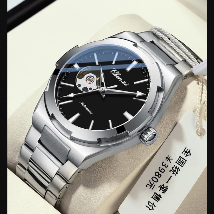 بهش بگوتا این ساعت کار میکنه کنارتم چون هیچوقت از کار نمیفته دلیل از کار نیفتادن این ساعت اینه که نیازی به باتری ندارع و وقتی رو مچ دست قرار میگیره با حرکت دست کوک و شروع به کار کردن میکنه و قرار تا آخر عمر برات کار کنه این رفرنس ز برند چانگ شی به همراه باکس ا صلی و کارت گارانتی براتون ارسال میشود C H E N X I 8856 FOR MEN'S موومنت اتومات بدون نیاز به باتری شیشه کریستال ضدخش پشت ساعت شیشه نشکن شب نما ضدآب قوی شیشه کریستال ضدخش قطر صفحه ۴۲ میلی متر کارت گارانتی تاریخ دار و معتبر و باکس ا صلی در سه رنگ قفل پروانه ای مخفی
