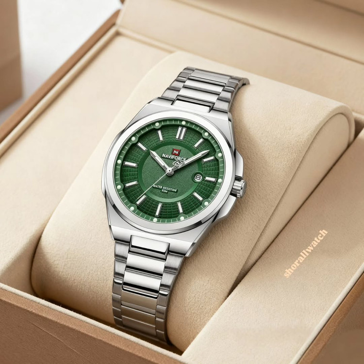 ساعت مچی با موومنت ژاپنی و بدنه فول استیل که در برابر نفوذ آب مقاوم است و به همراه کارت گارانتی و دفترچه ارسال میشود. قطر صفحه ۴۳ میلی متر و وزن ساعت ۱۴۰ گرم است.