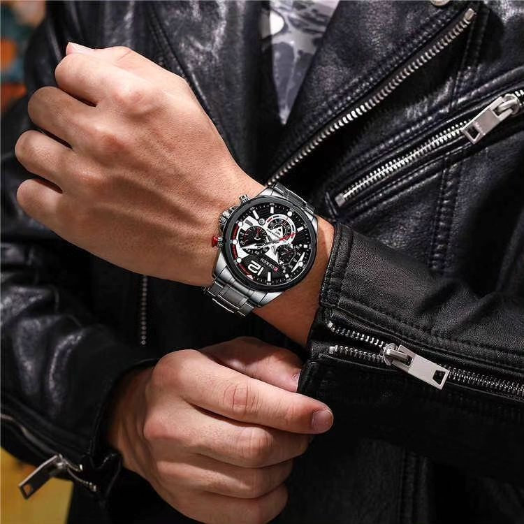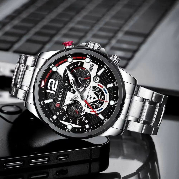 در چهار رنگ (ویدئو و رنگ بندی در اسلاید دوم) اور جینال برای آقایون سه موتور فعال کرنوگراف نمایش ساعت بصورت AM.PM روزشمار فعال بند و قاب استیل رنگ ثابت شیشه کریستال ضدخش ضدآب قوی قطر صفحه شب نما به همراه باکس هدیه شکیل
