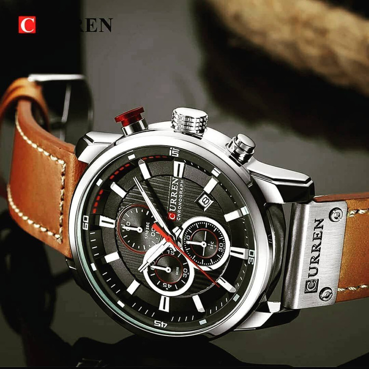 روزشمار فعال قاب استیل رنگ ثابت بند چرم حک شده