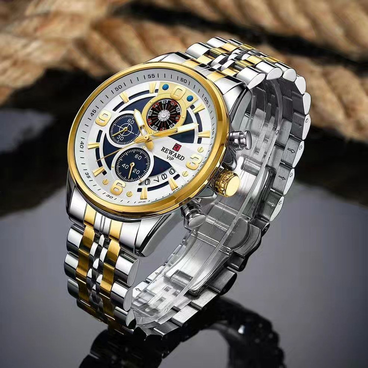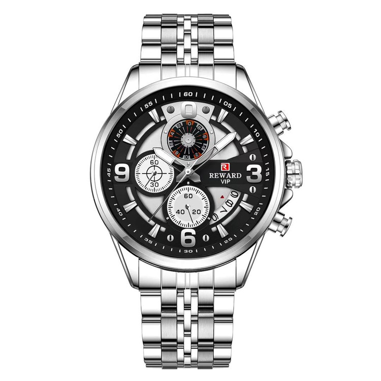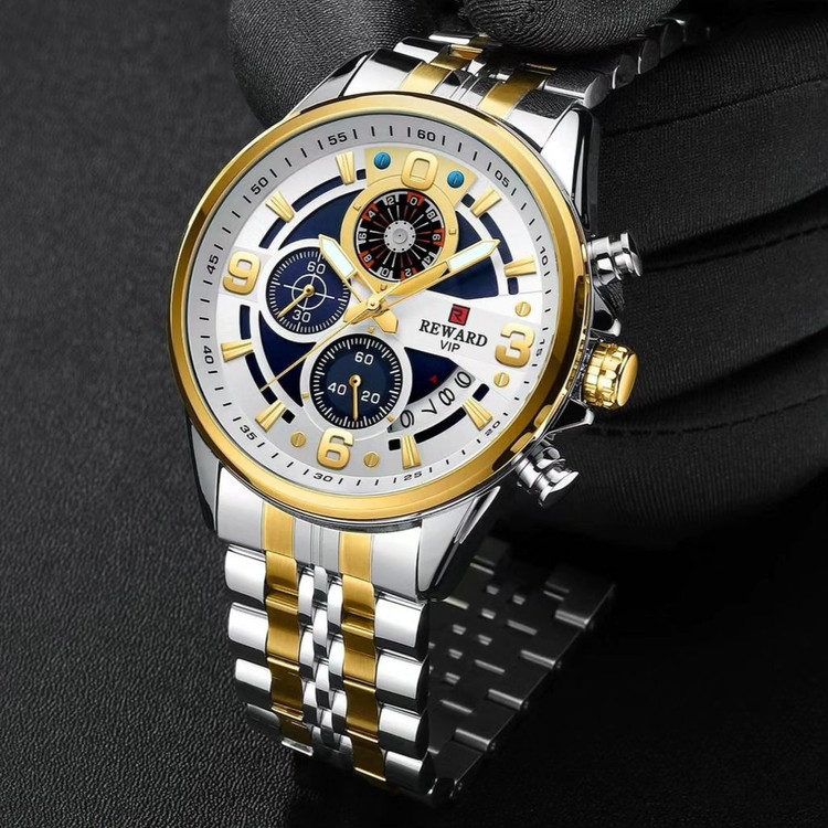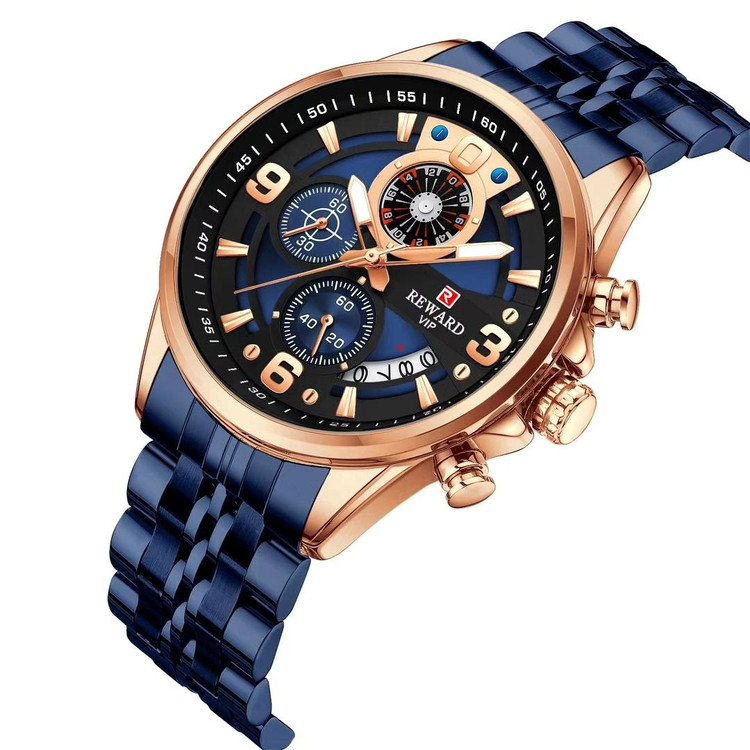 موتور ژا پن سه موتور فعال کرنوگراف روزشمار فعال بند و قاب استیل رنگ ثابت شیشه کریستال ضدخش ضدآب قوی قطر صفحه ۴۶ میلی متر به همراه باکس ا صلی و کارت گارانتی معتبر